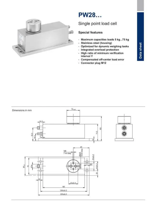iQ2廣州南創(chuàng)電子科技有限公司最小檢定分度值高達 20000,PW28 單點稱重傳感器完全滿足 C3 精度等級要求,可為您提供非常精確的測量結(jié)果。不銹鋼外殼固有的高剛度,使其非常適用于靜態(tài)和動態(tài)應(yīng)用。IP67 防護等級可用于惡劣的工業(yè)環(huán)境。所有PW28稱重傳感器,無論其量程大小,均內(nèi)置過載保護,可防止意外過載。
