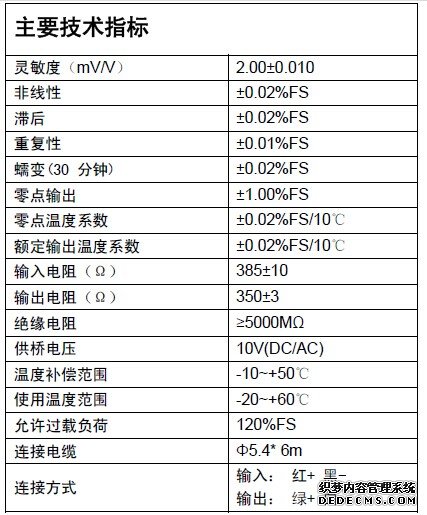 稱重傳感器MS-6-250kg技術(shù)參數(shù):
