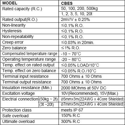 韓國Bongshin CBES-10tf稱重傳感器技術(shù)參數(shù)圖:
