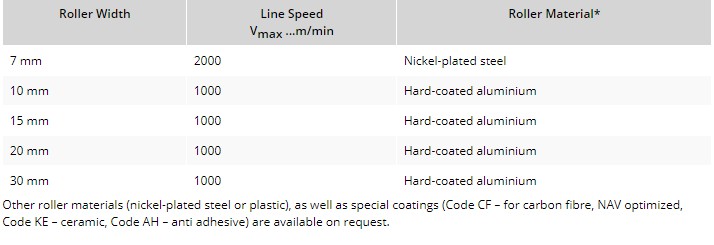 寬度從7毫米到30毫米的雙法蘭外導輥(可選單法蘭輥)