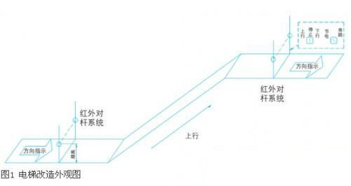 在扶梯上下兩端各裝一對立桿,此桿用來安裝固定紅外感應開關和扶梯上下行指示標識。另外在扶梯上端對桿上還要安裝一對鑰匙開關,一個是節(jié)電和市 電模式切換開關,另一個是上行、停止、下行模式選擇開關(曳引機安裝在扶梯上端電井內(nèi),故開關就近選擇安裝)。當節(jié)電/市電切換開關選擇市電時,自動扶梯 開、停、上下行方式與未改造前一致。當節(jié)電/市電開關選擇節(jié)電時,扶梯自帶啟動開關、上下行開關無效,此時扶梯運行方向由安裝在立桿上的上行/停止/下行 開關來選擇控制。扶梯由紅處感應開關啟動。當有人走上扶梯時,首先會觸發(fā)紅外傳感器開關。當系統(tǒng)檢測到紅外傳感器開關信號時,電梯就會被啟動,并開始計 時。在計時期間,如果有第二個人走上扶梯,系統(tǒng)會重新計時,直到設定時間結束,電梯便會自動停機。這樣實現(xiàn)了“人來自啟,人去自停”的運行模式,使扶梯顯 得更加人性化。