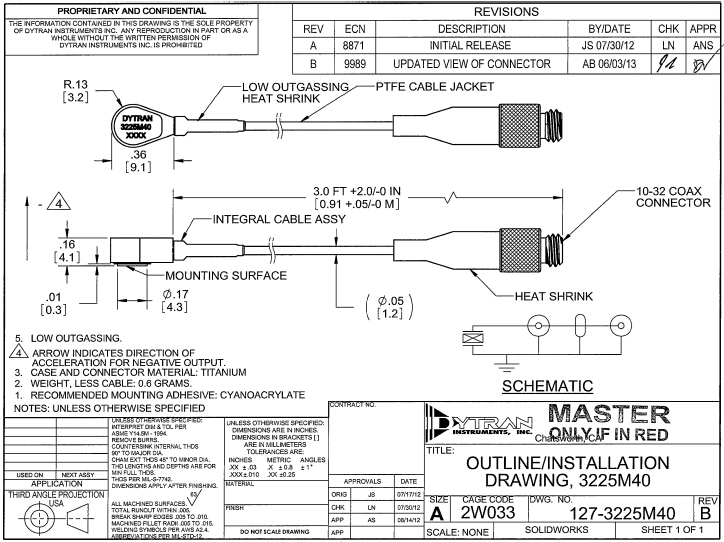 美國(guó)Dytran 3225M40加速度傳感器尺寸圖: