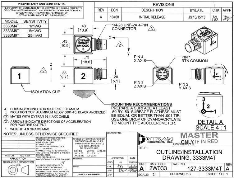 美國(guó)Dytran 3333M4T加速度傳感器尺寸圖: