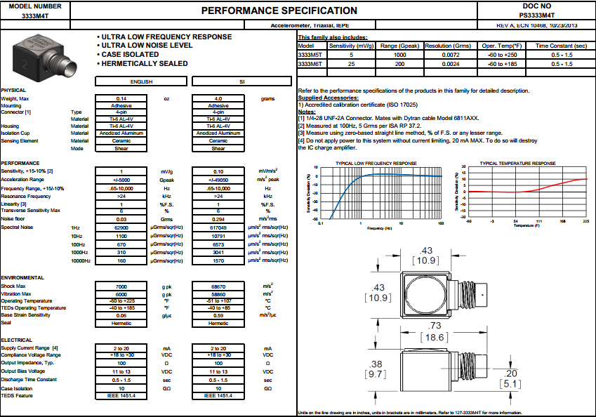 美國(guó)Dytran 3333M4T加速度傳感器性能規(guī)格圖: