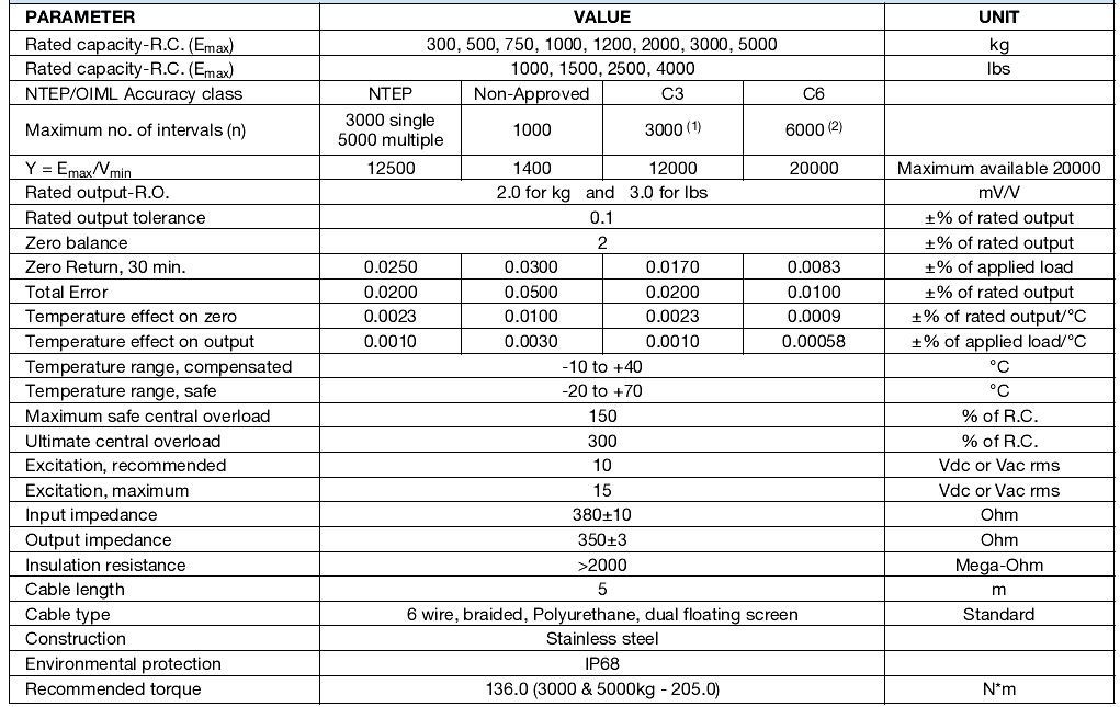特迪亞稱重傳感器3510-3000KG不銹鋼單點式稱重傳感器技術(shù)指標(biāo)圖: