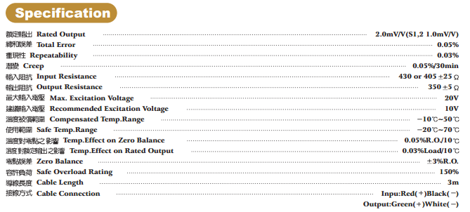 臺灣JIHSENSE荷重元S-10kg_S-10kg傳感器介紹:1982年,初期以精密加工為主要業(yè)務(wù),至1987年有感於國內(nèi)力量感測器荷重元(Loadcell)昂貴的售價及冗長的交貨期將不利於未來自動化及高精密度機器設(shè)備的發(fā)展,於是毅然投入研發(fā),並自國外及國內(nèi)研究單位吸收各項相關(guān)技術(shù),經(jīng)過兩年的研究發(fā)展,終於在1989年(民國78年)成功開發(fā)出SA荷重元,臺灣JIHSENSE SA稱重傳感器。