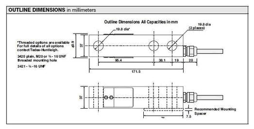 美國特迪亞tedea 3420稱重傳感器產(chǎn)品尺寸:jyY廣州南創(chuàng)電子科技有限公司