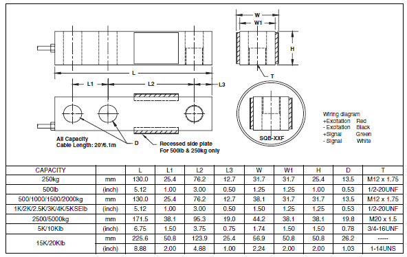 美國世銓Celtron SQB稱重傳感器系列所有量程如下: