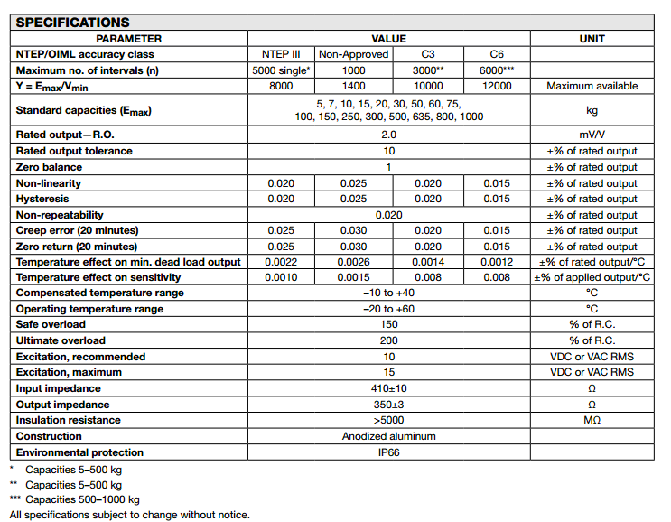 美國威世世銓Celtron LOC稱重傳感器系列所有量程如下:   XQa廣州南創(chuàng)電子科技有限公司