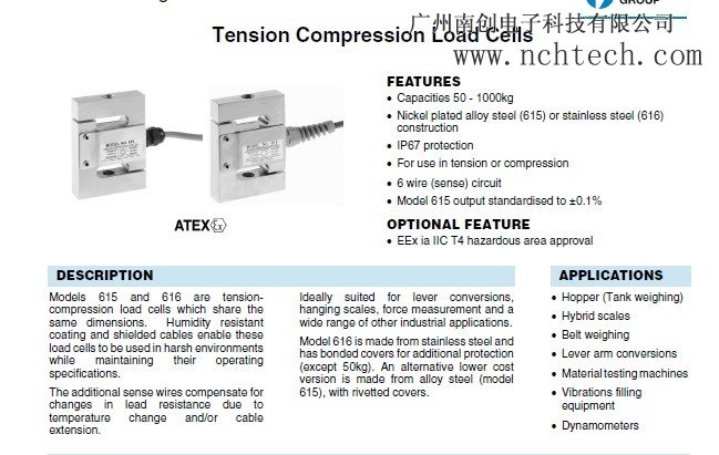 615-750kg_美國(guó)特迪亞615-750kg稱重傳感器_Tedea MODEL:615 750kg傳感器379廣州南創(chuàng)電子科技有限公司