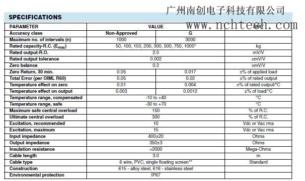 美國(guó)特迪亞tedea 615-750kg S型稱重傳感器各項(xiàng)技術(shù)指標(biāo):          379廣州南創(chuàng)電子科技有限公司