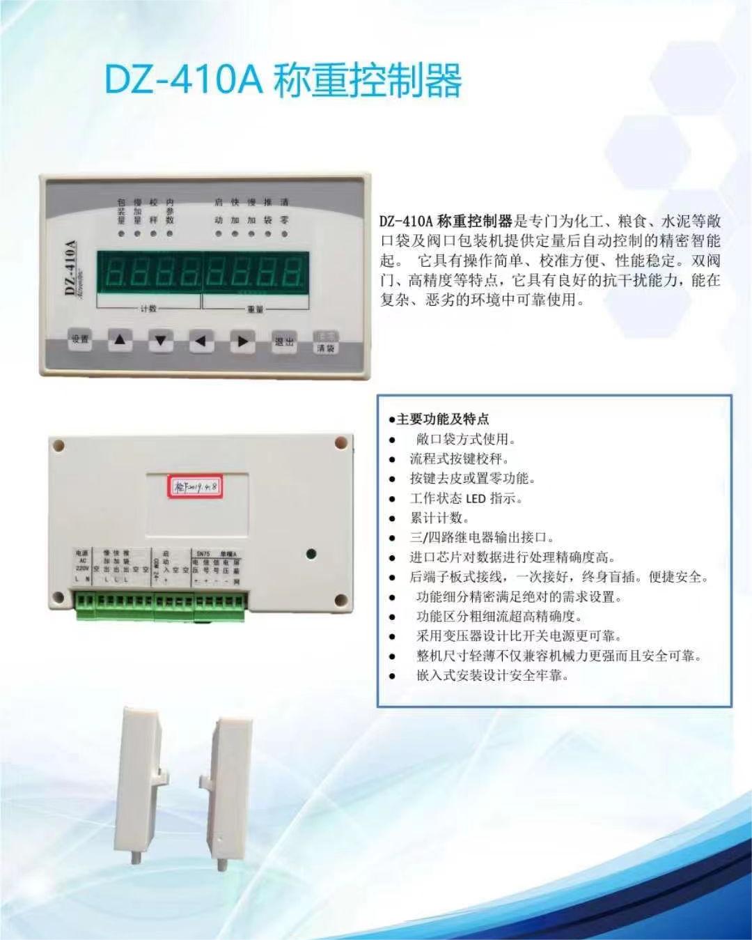 IU2廣州南創(chuàng)電子科技有限公司DZ-410A稱重控制器介紹:IU2廣州南創(chuàng)電子科技有限公司DZ-410A稱重控制器是專門為化工、糧食、水泥等敞口袋及閥口包裝機(jī)提供定量后自動(dòng)控制的精密智能起。 它具有操作簡單、校準(zhǔn)方便、性能穩(wěn)定。雙閥門、高精度等特點(diǎn),它具有良好的抗干擾能力,能在復(fù)雜、惡劣的環(huán)境中可靠使用。