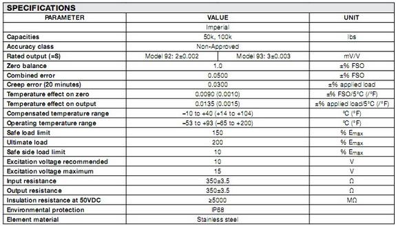 產(chǎn)品名稱:Vishay Revere稱重傳感器92-50KLBS