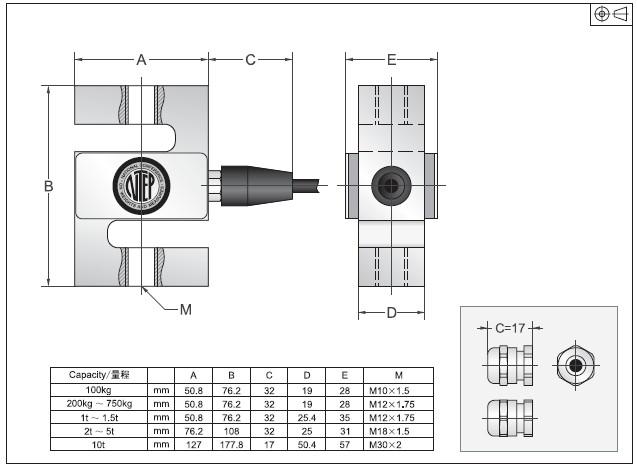 美國(guó)傳力稱重傳感器BSS-1500kg選型圖: