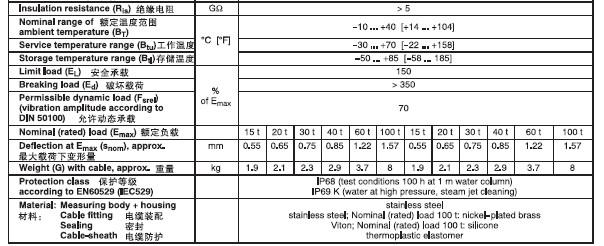 德國HBM C16AD1/15T稱重傳感器技術(shù)指標(biāo):