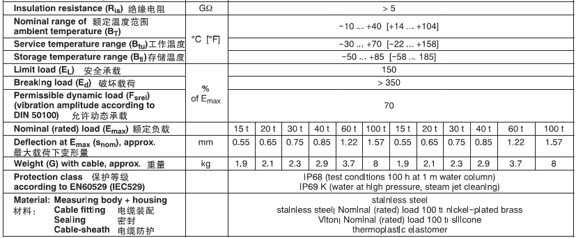 德國HBM C16AD1/200T稱重傳感器C16系列:
