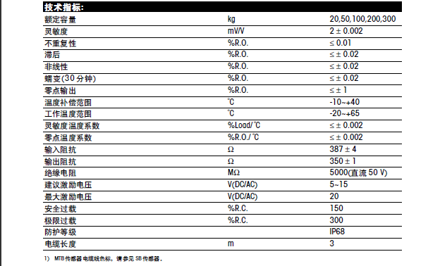 梅特勒托利多MTB-20 稱重傳感器技術(shù)指標(biāo):