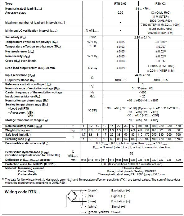 德國(guó)HBM RTNC3/33T稱重傳感器技術(shù)指標(biāo):
