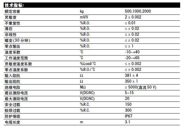 梅特勒托利多稱(chēng)重傳感器SBC-500kg技術(shù)指標(biāo):