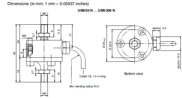 U9B額定力: 50N, 100N, 200N, 500N, 1kN, 2kN, 5kN, 10kN, 20kN, 50kN