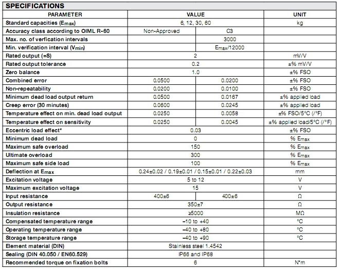 17335: HPS-6kg -1 100,000 lb 30ft RTI 3mV/V 700 OHM WW FM IP67 NTEP