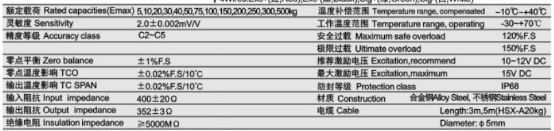 稱重傳感器HSX-SS-50KG技術(shù)指標(biāo):