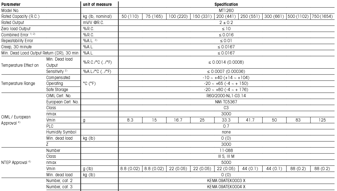 關(guān)于梅特勒托利多MT1260-635kg稱重傳感器解析: