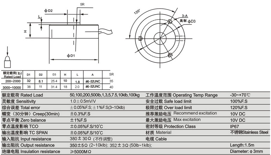 結(jié)構(gòu)形式:微型稱重傳感器、圓板式結(jié)構(gòu)