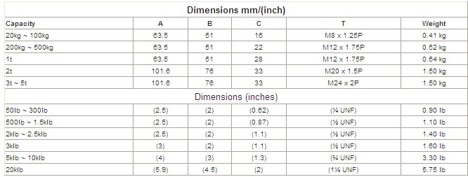 它擁有最大的容量范圍我們的任何稱重傳感器:50磅到20klb(UNF螺紋)英制20公斤到5噸(公制螺紋),公制。