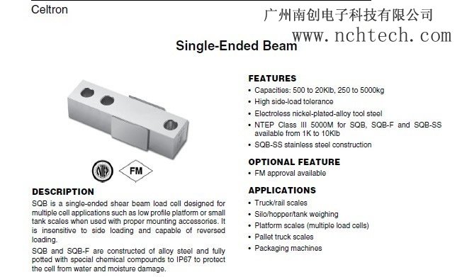 Celtron SQB單端梁稱重傳感器是高負荷量程