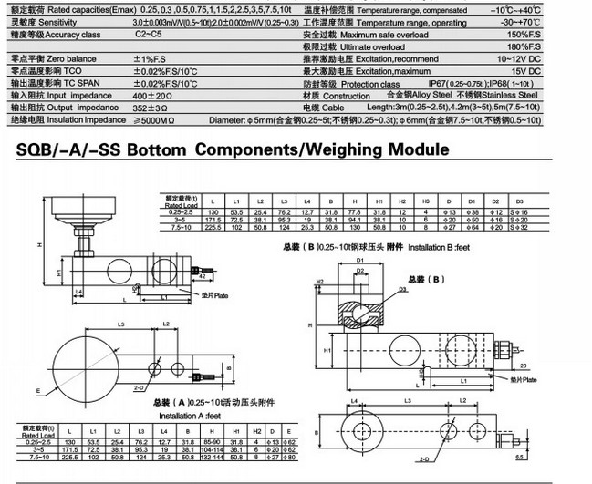 SQB-3T稱重傳感器一般都需要在制造時,附加的溫度補償應變計,使傳感器受溫度變化的影響小。