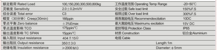 柯力UDA-750KG傳感器溫度變化1℃對零點的影響Temp. Effect/℃ on Zero: <0.0026%