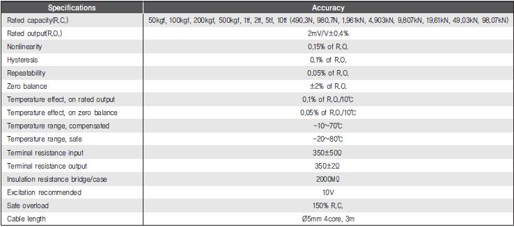 非直線性:5V,約1.5mV/ V±1%的濕度1.5mV/V±1%20kNは1mV/V±1%)