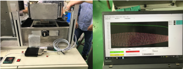 傳感器被安裝在加熱爐底部的固支平臺上,作為測試部件串聯(lián)在結(jié)構(gòu)中,平臺下方是三軸聯(lián)動機床,測試過程中,我們對傳感器的受熱溫度進行監(jiān)測,發(fā)現(xiàn)傳感器上方安裝板的溫度在40℃左右,這個溫度并不影響傳感器的使用;