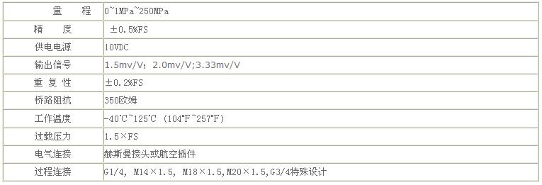 PT210C壓力傳感器參數(shù):