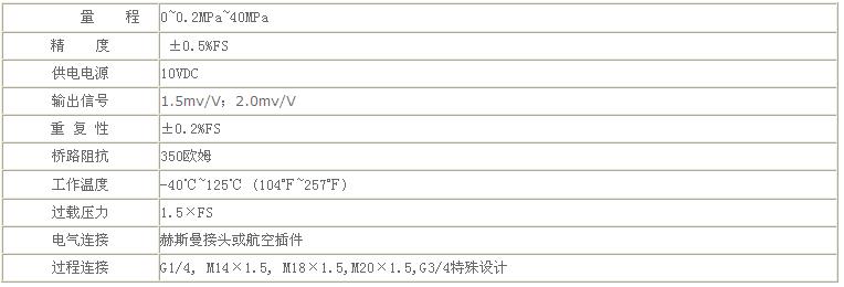 零點(diǎn)輸出≤%F·S±靈敏度溫度系數(shù)≤%F·S/20℃±0.05