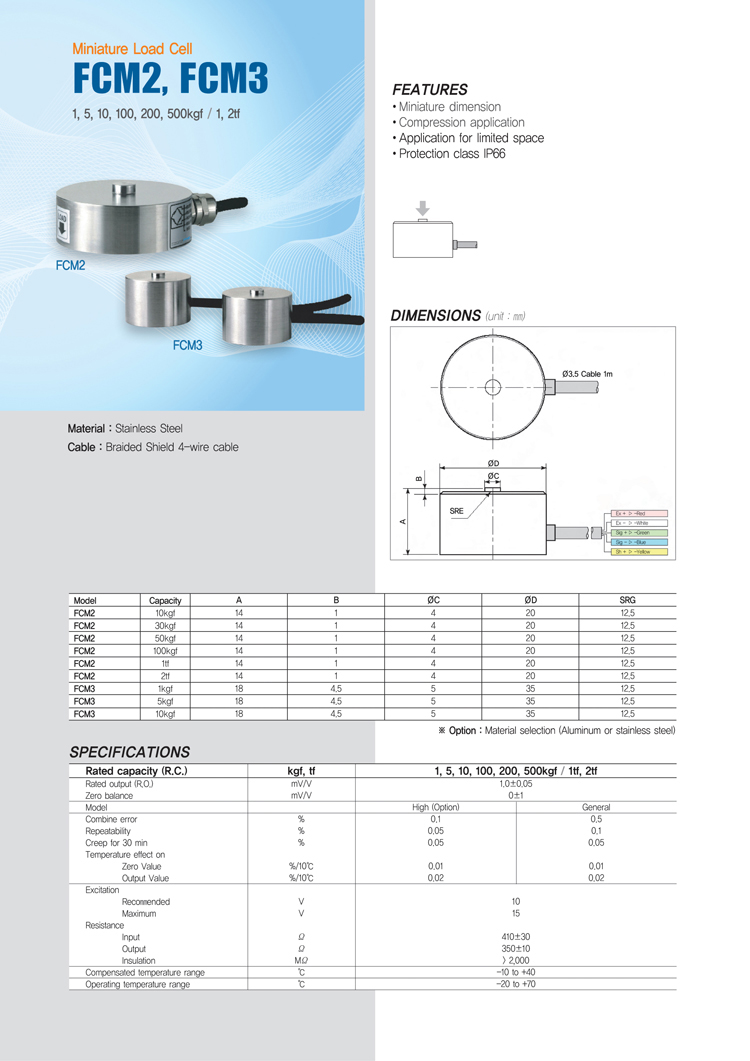 韓國(guó)Fine FCM2-100KG稱重傳感器所有量程: