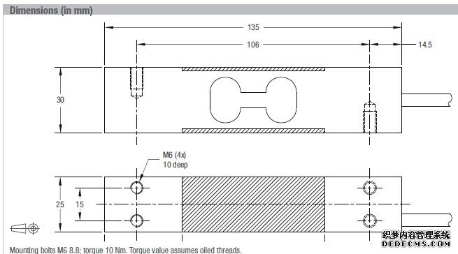 測(cè)力傳感器上設(shè)置有一個(gè)屏蔽,6芯電纜(AWG26)。
