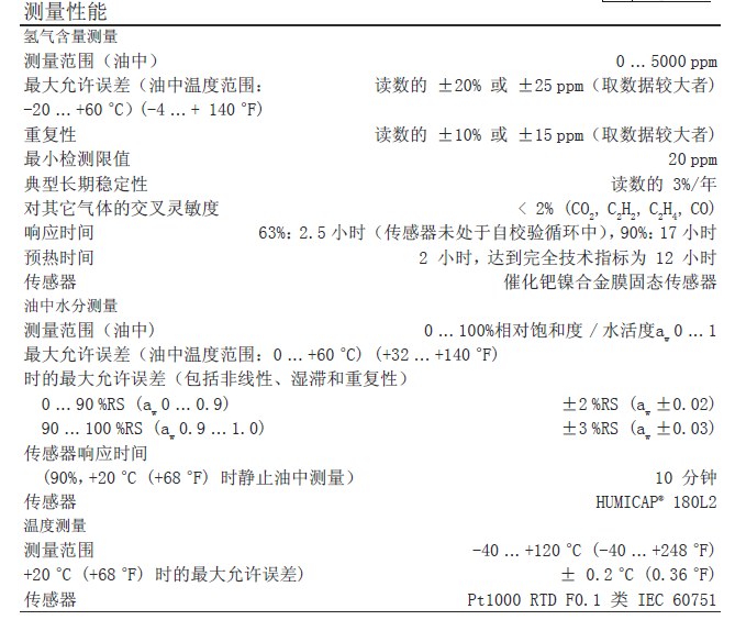 測量范圍(油中) 0 ... 100%相對飽和度 / 水活度aw 0 ... 1