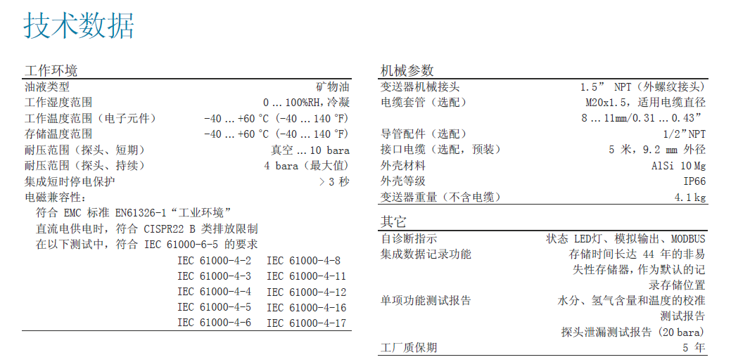 Vaisala MHT410 水分、氫氣含量及溫度變送器可以對電力變壓器絕緣油進行可靠的在線監(jiān)測。MHT410 采用獨家設計的探頭,能夠?qū)崟r傳送與變壓器健康狀況相關的精確測量值和趨勢數(shù)據(jù)。