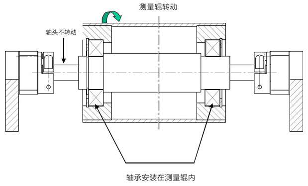 。測(cè)量輥的軸頭不轉(zhuǎn)動(dòng),傳感器提供軸接頭;