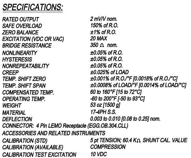 美國(guó)FUTEK LSB400稱重傳感器技術(shù)參數(shù)圖:
