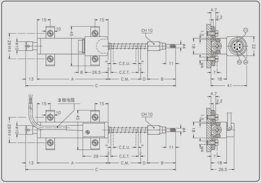 mvR廣州南創(chuàng)電子科技有限公司杰佛倫gefran電子尺PY-1-C-150-XL0202 PY-1-C-050-XL0202尺寸圖:mvR廣州南創(chuàng)電子科技有限公司