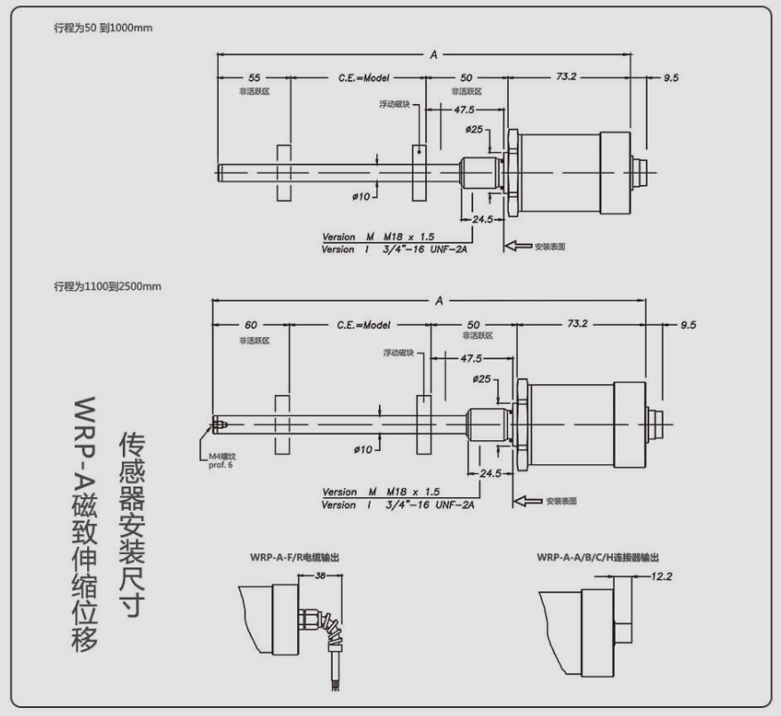 gyo廣州南創(chuàng)電子科技有限公司杰佛倫gefran電子尺WRP-A-B-175-E-1 WRP-A-B-300-E-1尺寸圖:gyo廣州南創(chuàng)電子科技有限公司