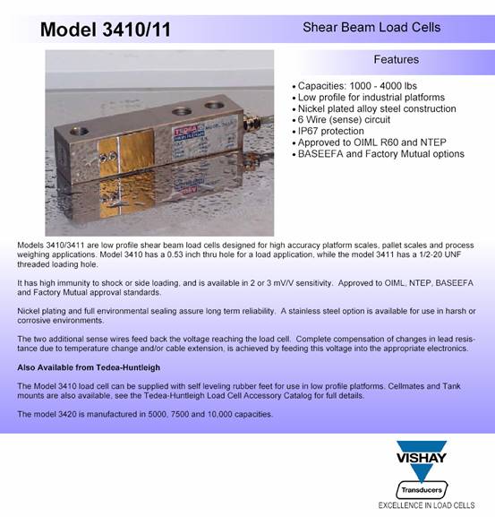 美國(guó)Tedea-Huntleigh 3410-1500LB稱重傳感器描述: