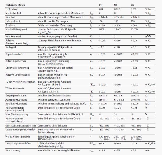 德國sartorius PR6241/13C3稱重傳感器技術(shù)參數(shù):