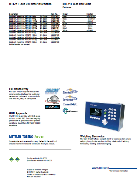 以上是瑞士梅特勒托利多MT1241-30kg稱重傳感器的產(chǎn)品資料,如需了解詳細(xì)信息,請(qǐng)登錄網(wǎng)址:http://www.xasjwx.com.cn,找銷售三部找高工程師。