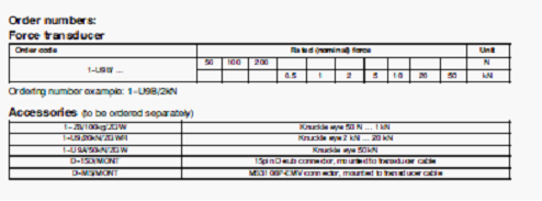 德國HBM U9B/200N稱重傳感器技術(shù)參數(shù):