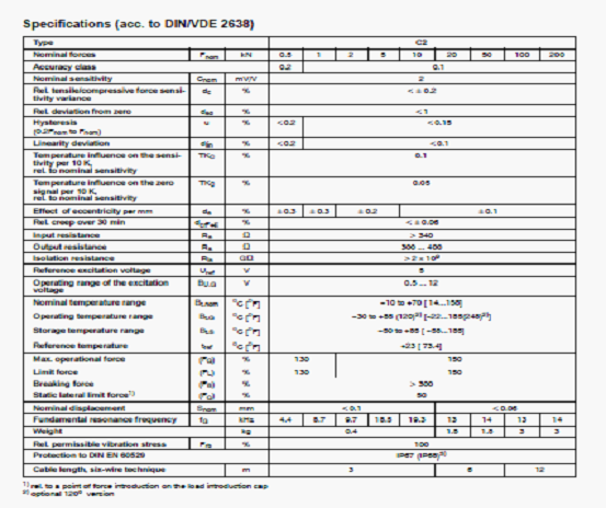 德國HBM C2/2T稱重傳感器技術(shù)參數(shù)圖: