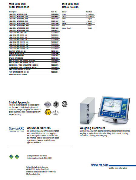 瑞士梅特勒托利多MTB-10稱重傳感器具體型號量程: